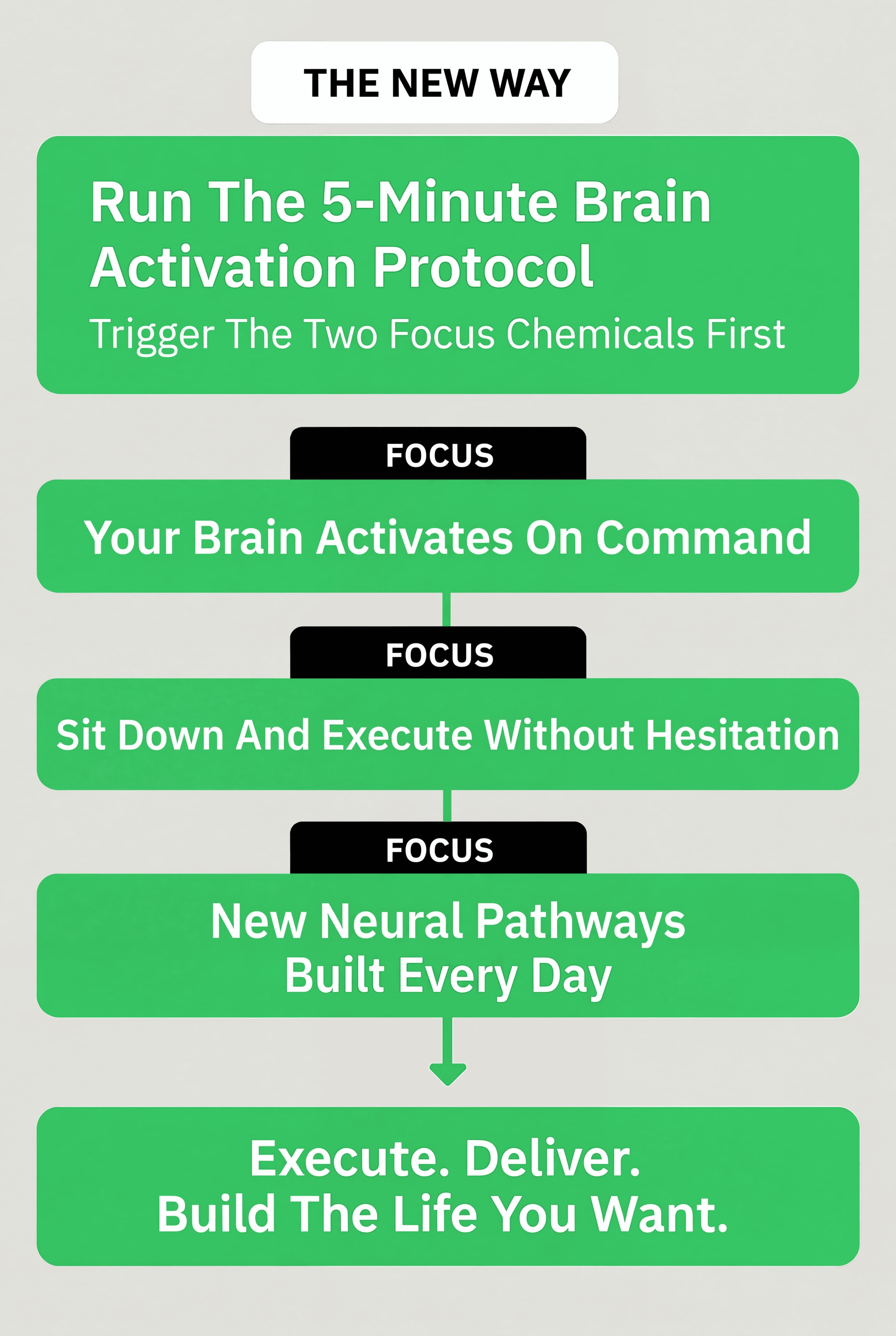 This is backed by research from Stanford and MIT. When you repeat the right activation sequence, you build new neural pathways. The old "avoidance circuit" weakens. The new "execution circuit" gets stronger.